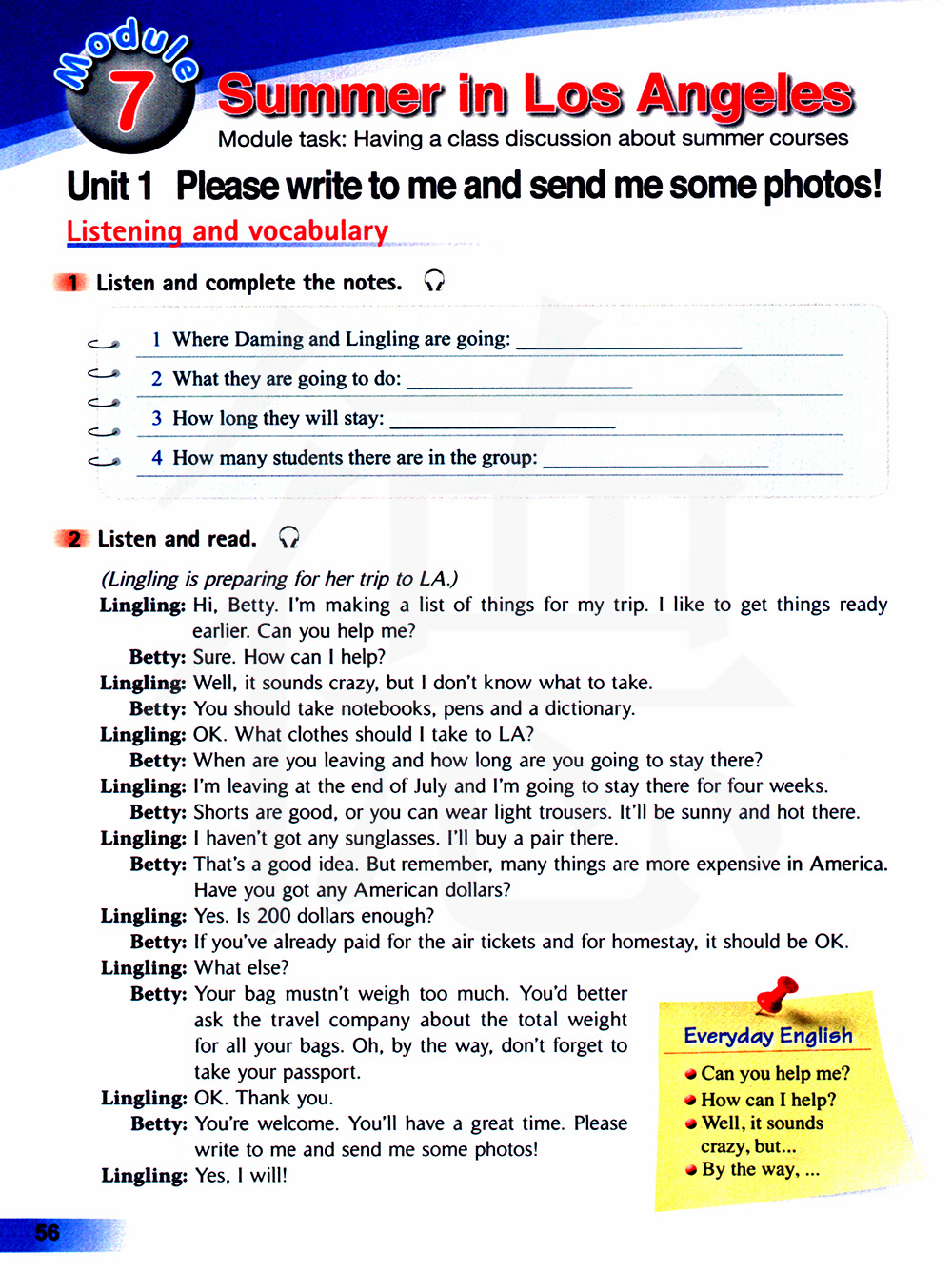 3. Lingling: Hi, Betty. I’ m making a list of things for my trip. I like to get things ready earlier. Can you help me? 你好,贝蒂。我正在列一张旅行所需的清单。我喜欢早一点把东西准备好。你能帮我吗?