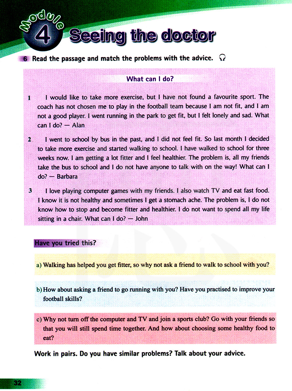 6 阅读下面的文章,将问题与建议匹配起来。