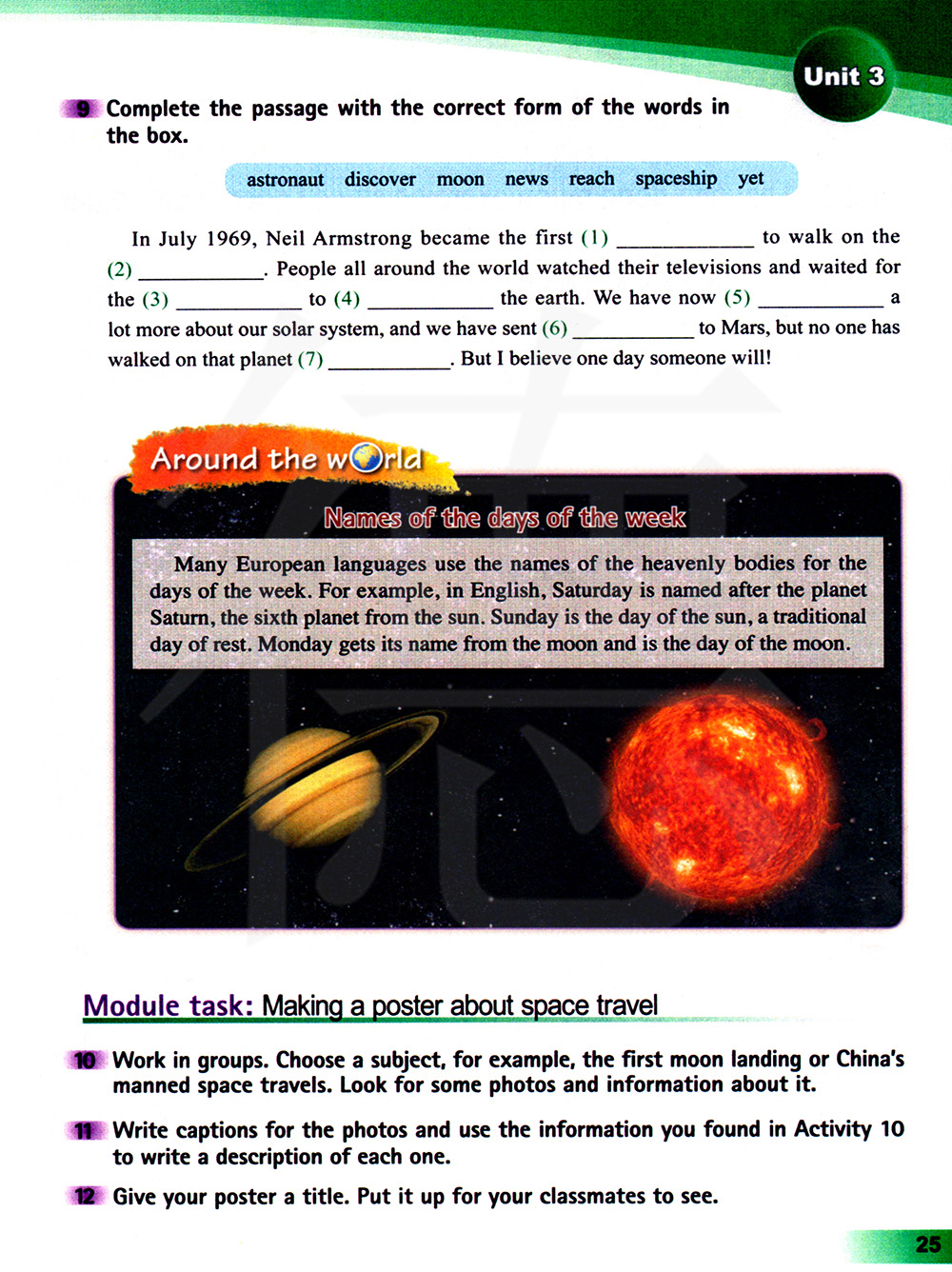 10 小组练习。选择一个主题,例如,第一次登月或者中国载人航天旅行。