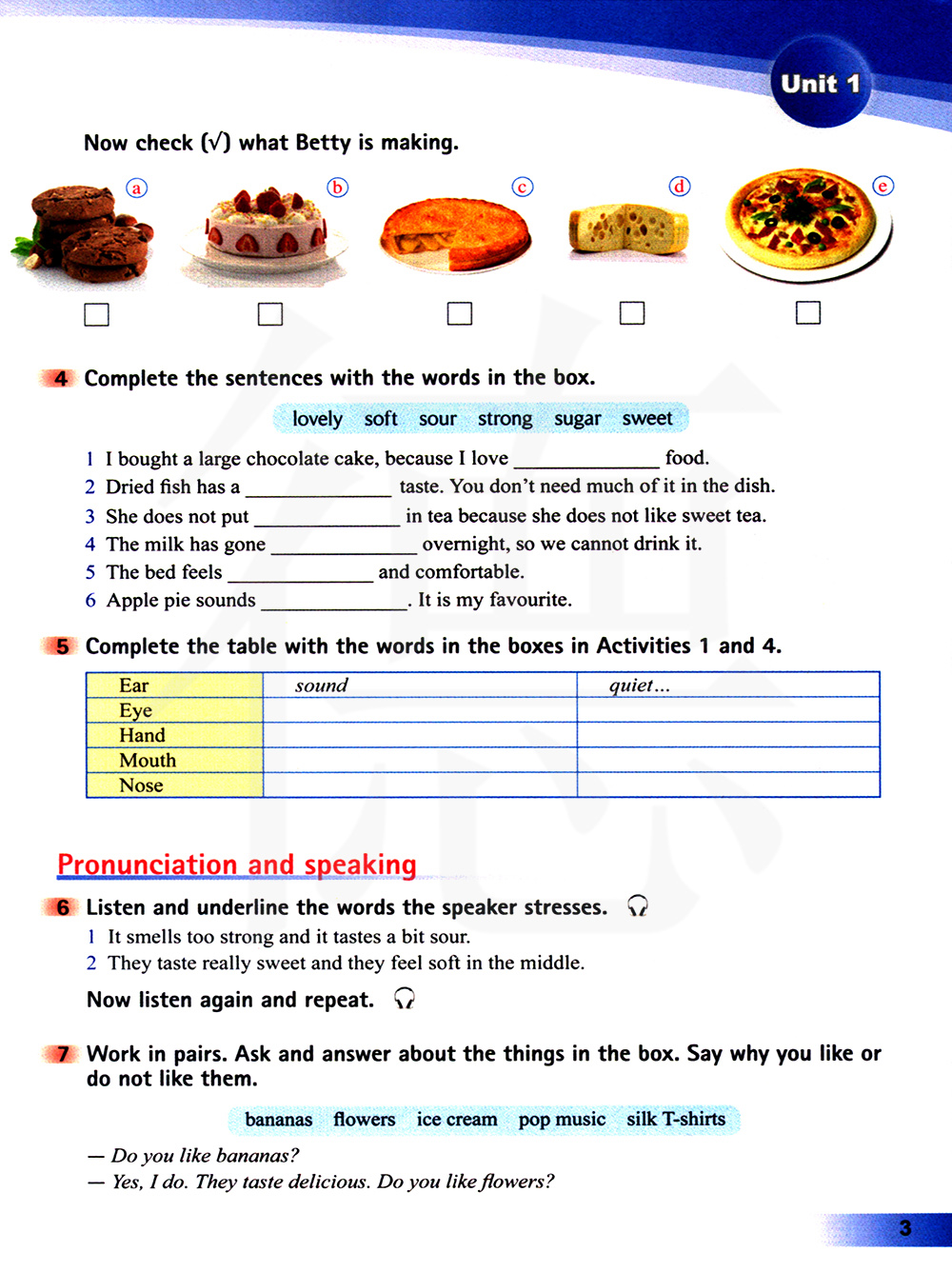 5 使用活动1和活动4的方框的单词完成下列表格。