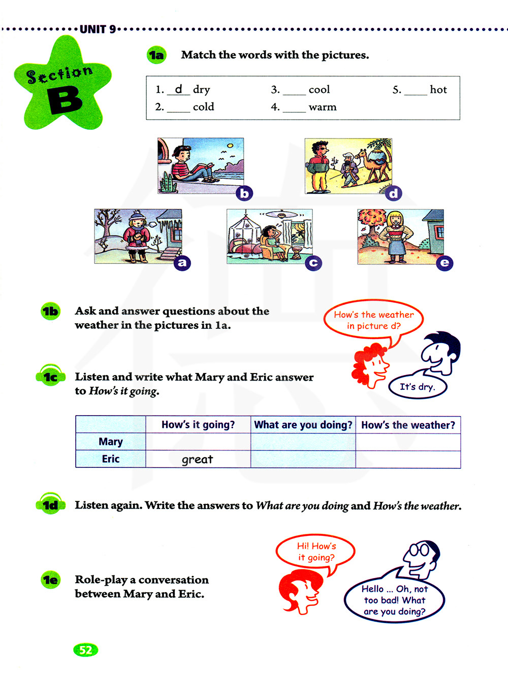 与同伴就1a中的天气进行问答。