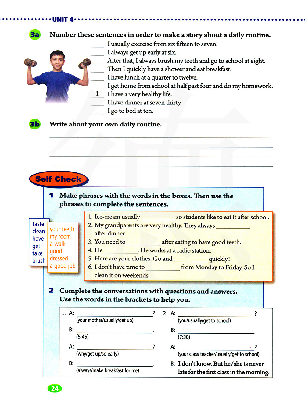 将句子排序,组成一个关于日常生活作息习惯的故事。
