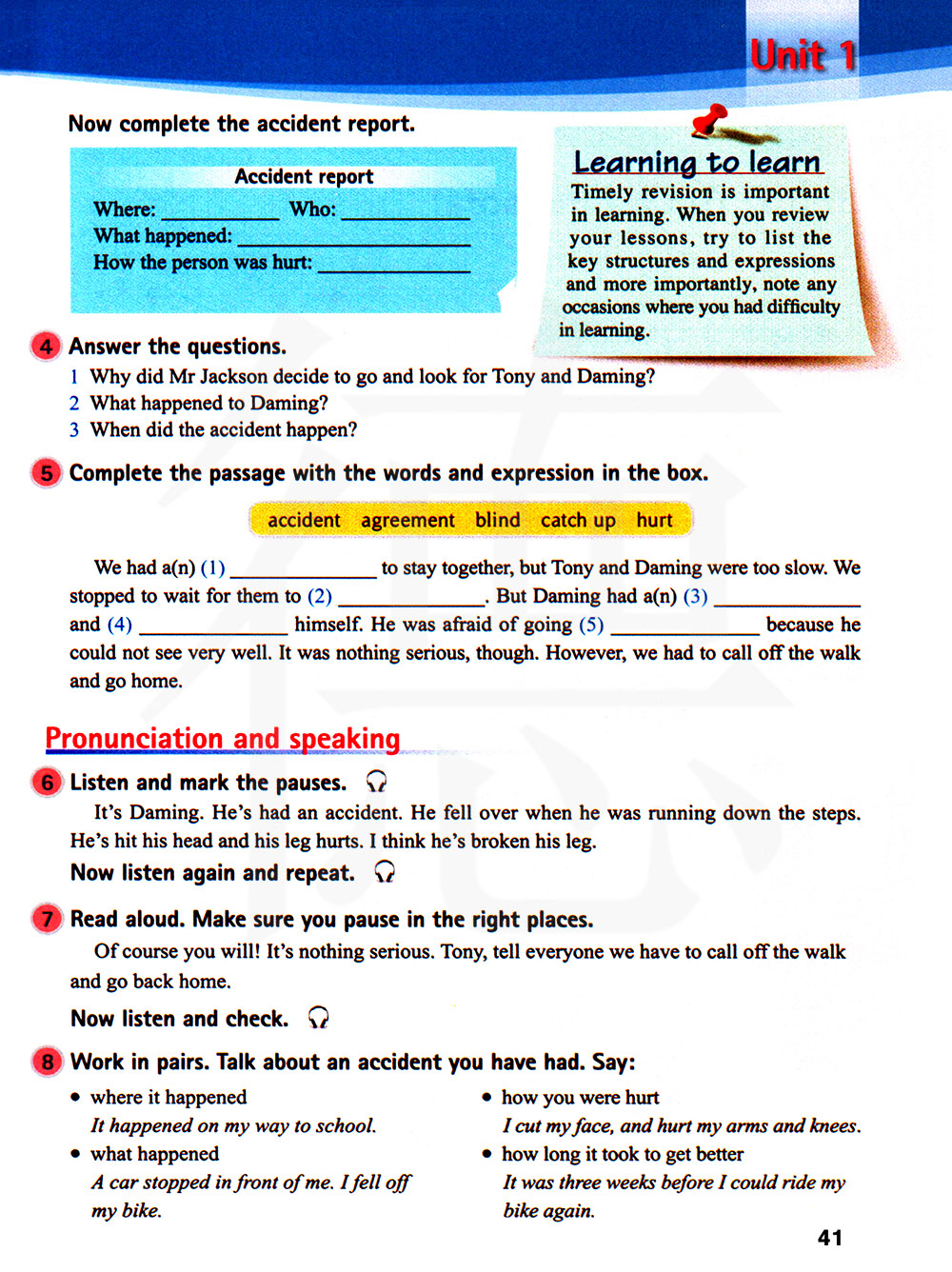 及时复习在学习中很重要。当你复习功课时,试着列出关键的结构和表达,更重要的是,记住所有的单词。