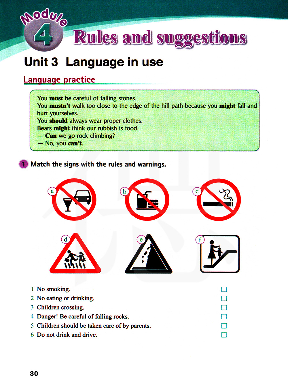 将标志与准则和警告搭配起来。