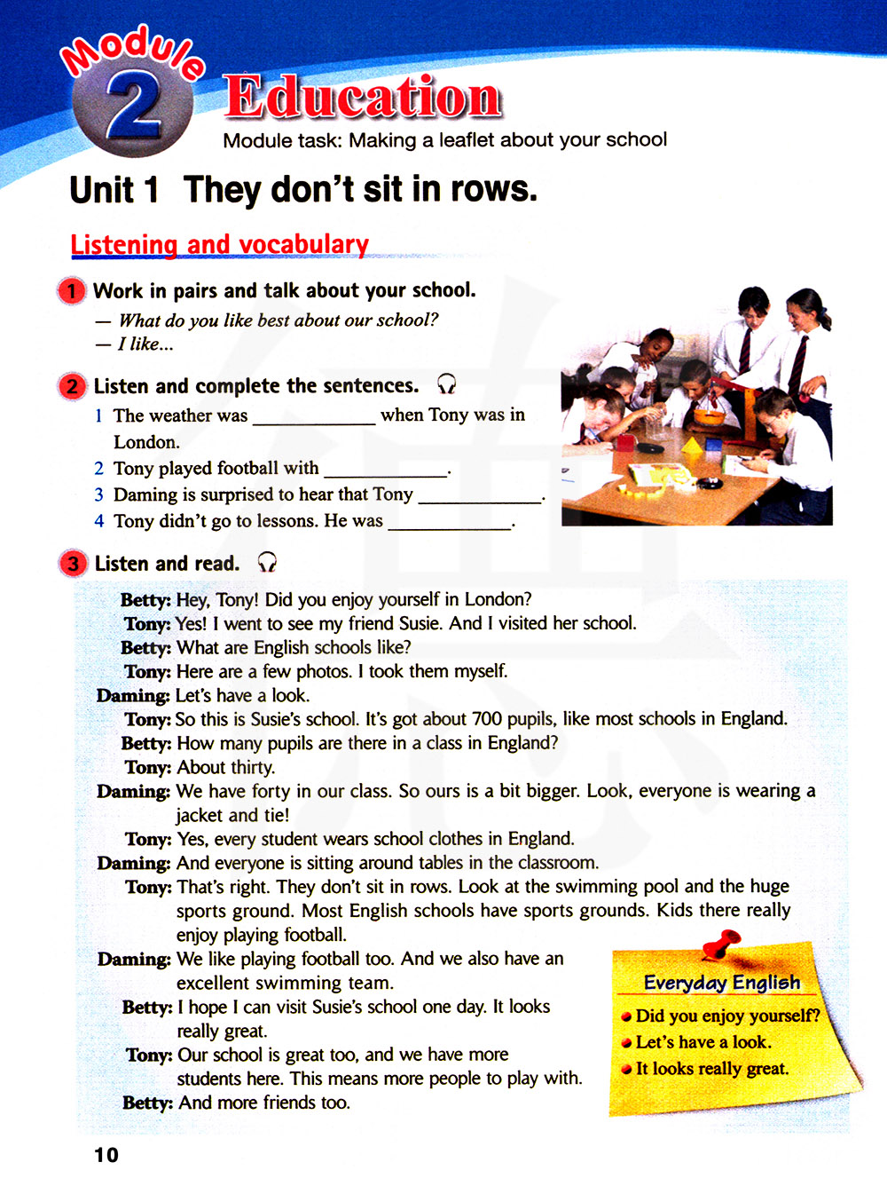 结对学习并谈论你的学校。