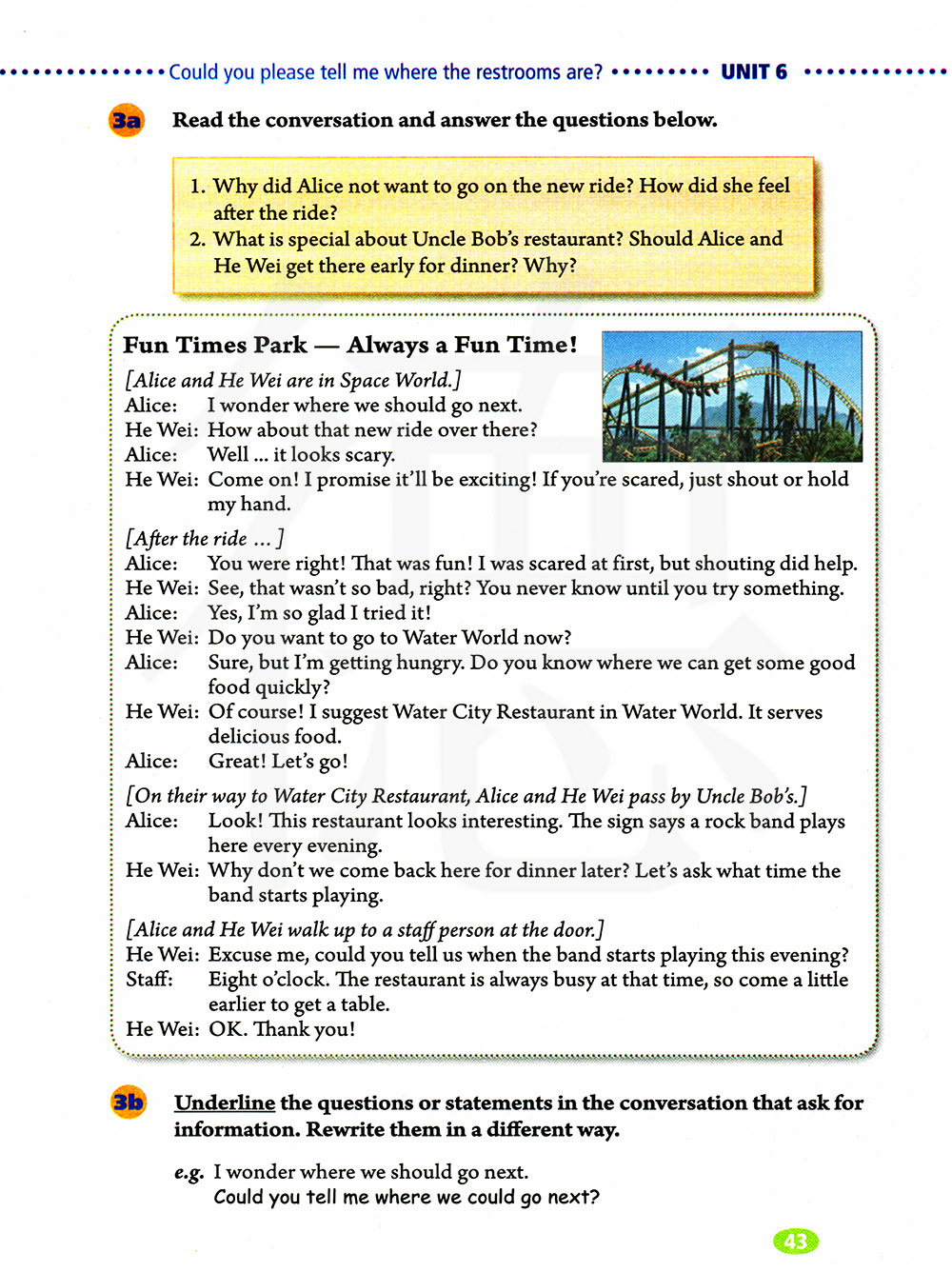 在对话中询问信息的问句或陈述句下面画线。以不同的方式重写它们。