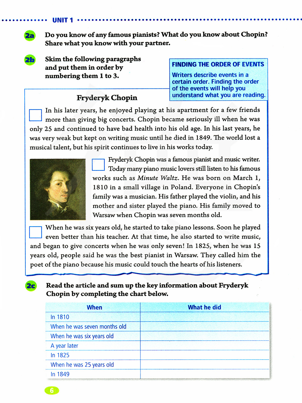 你知道一些著名的钢琴家吗?你知道肖邦吗?与你的搭档分享你所知道的。