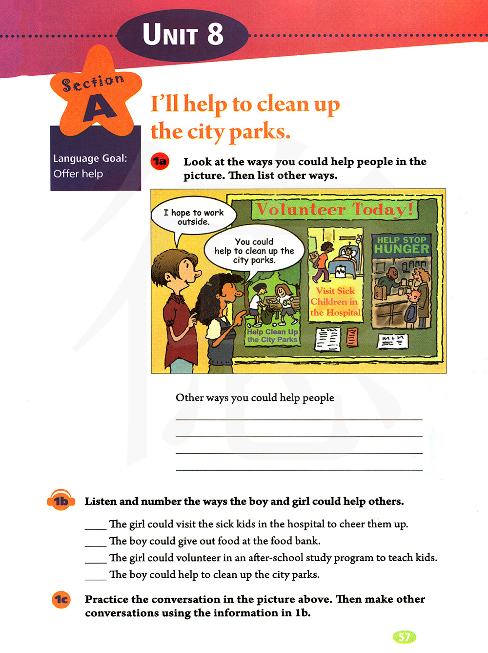 1. The boy could give out food at the food bank.