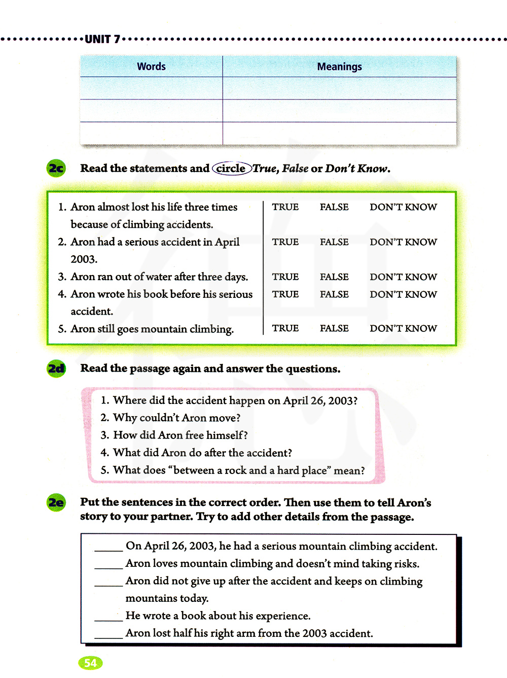 给句子排序,然后用这些句子告诉你的同伴阿伦的故事。试着从文章中增加一些细节。