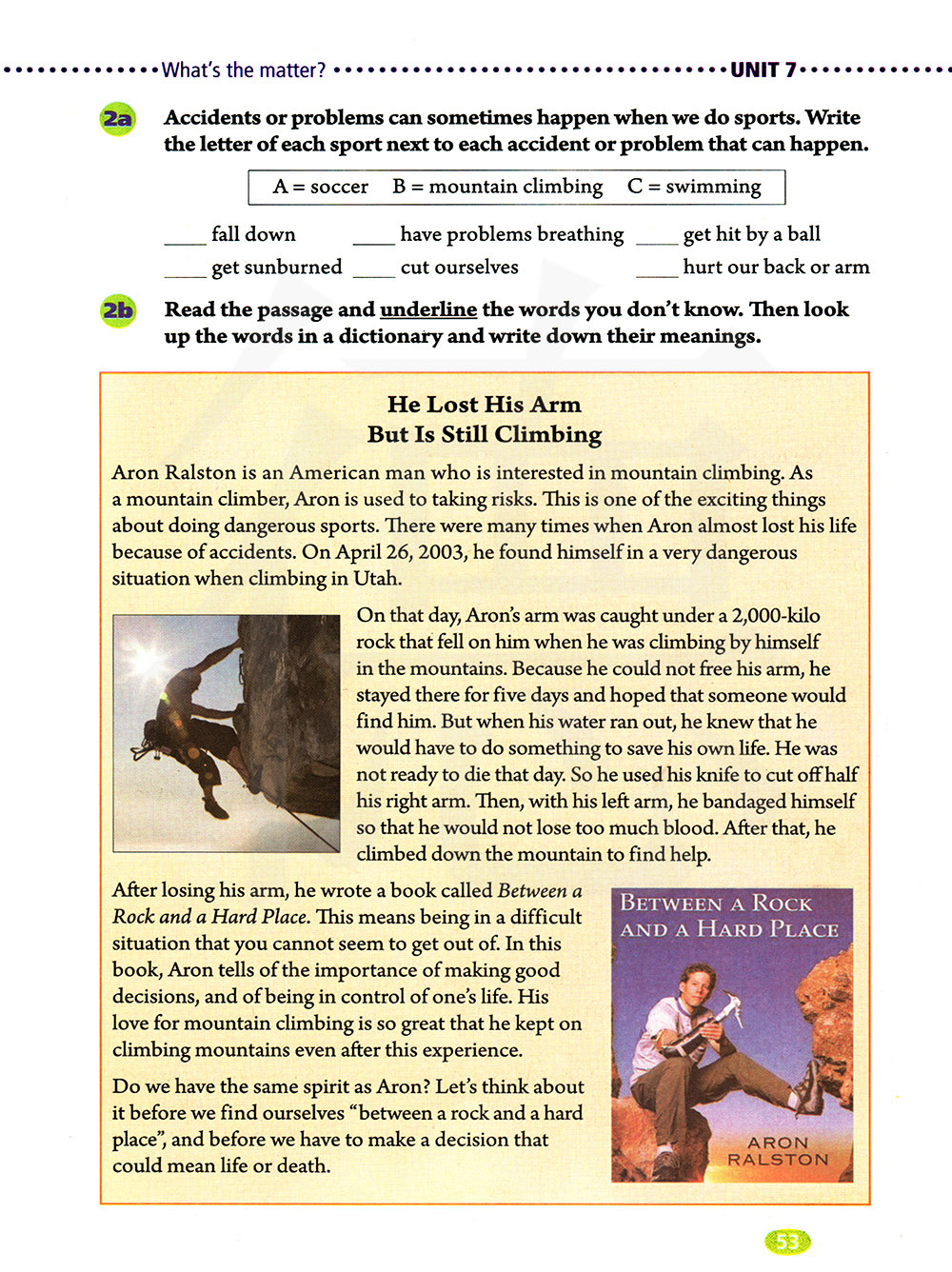 阿伦拉斯顿是一个对爬山感兴趣的美国人。作为登山运动员,阿伦习惯于冒险。这是危险运动令人兴奋的事情之一。有很多次阿伦差点以为你车祸而丧命。2003年4月26日,当他在犹他州游泳时,他发现自己处于非常危险的境地。