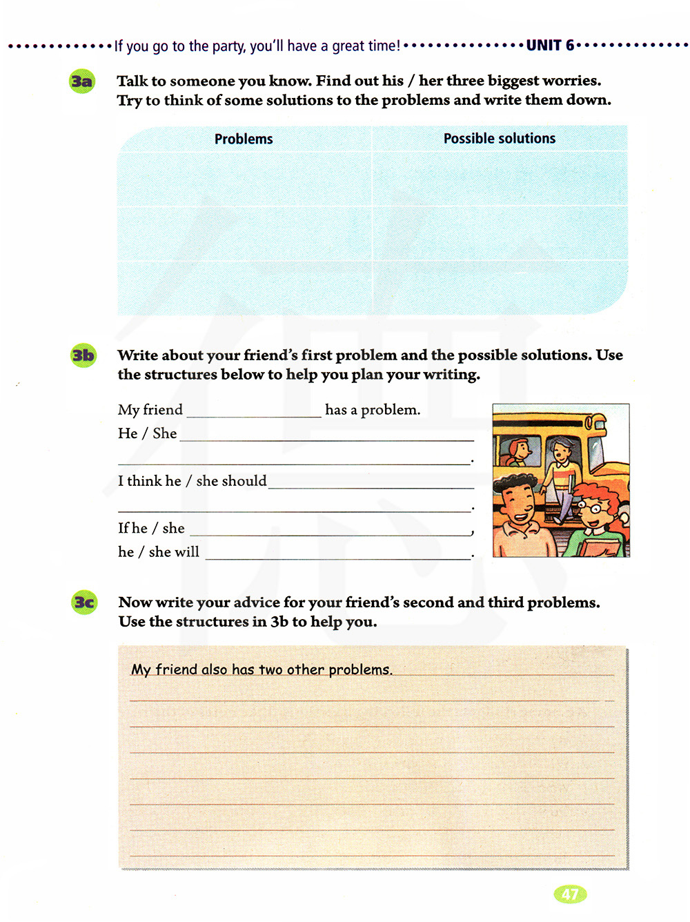 与你认识的人谈谈,找出他/她三个最大的困难。试着去想想这些问题的解决方法,并把它们写下来。