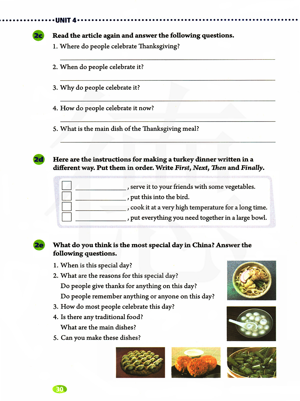 这里用一种不同的方式写的制作一顿火鸡晚餐的说明,按顺序排列它们。写“先,接下来,然后”和“最后”