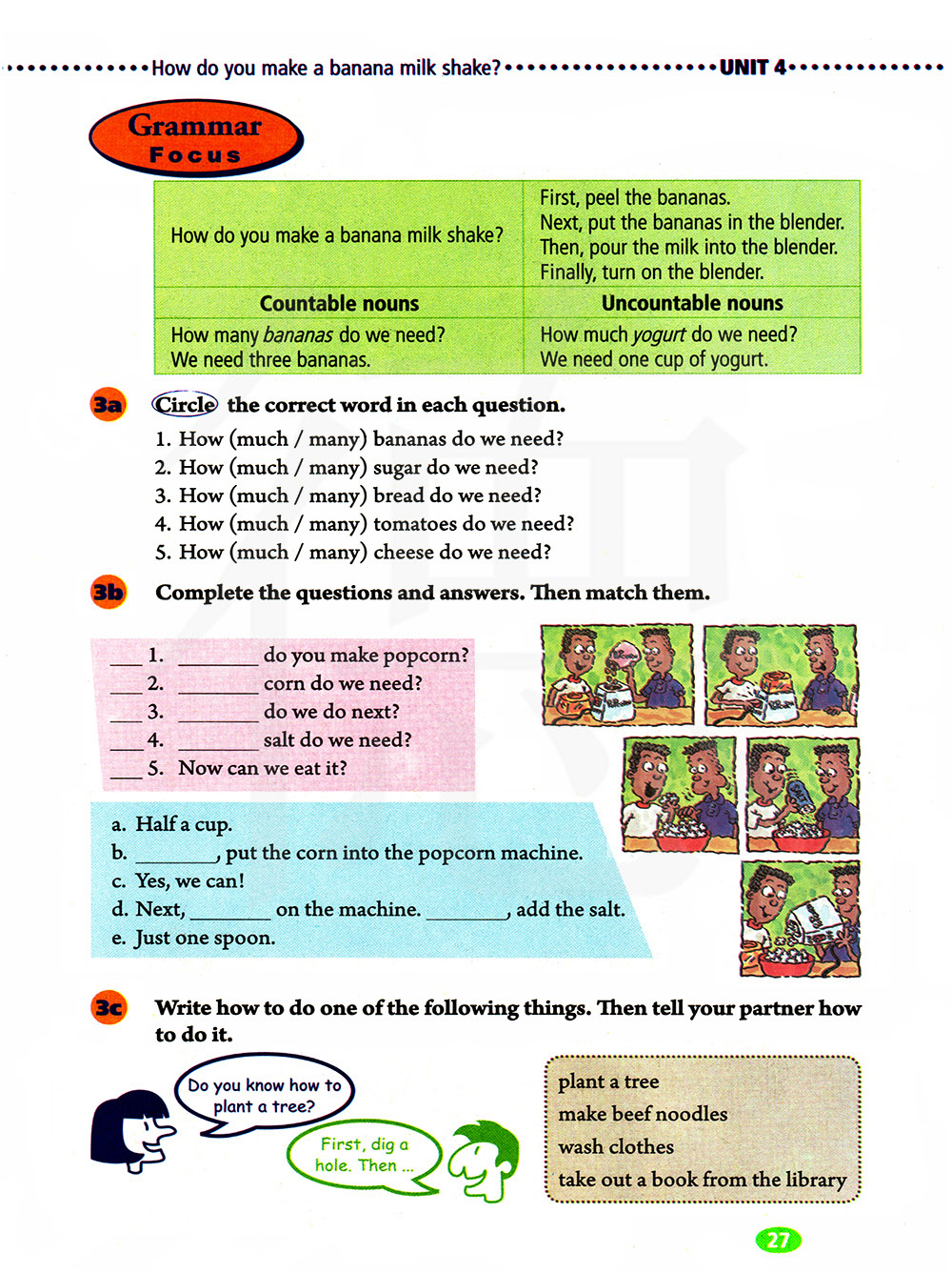 写写如何做下列其中一件事情。然后告诉你的伙伴如何去做这件事情。