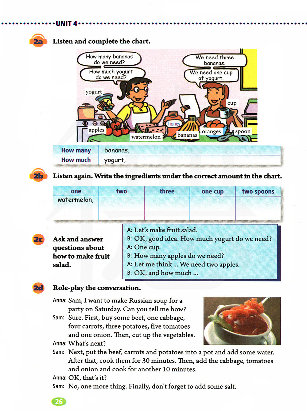 我们来制作水果沙拉吧。 好的,好主意。我们需要多少酸奶?