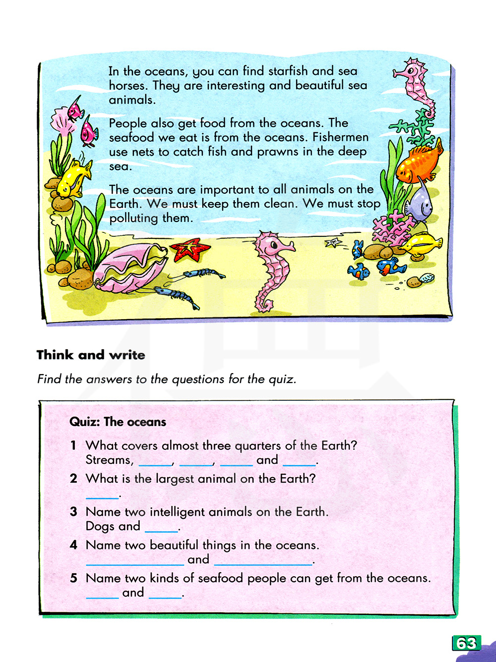 在海洋里,你可以见到海星和海马。它们是既有趣而又漂亮的海生动物。