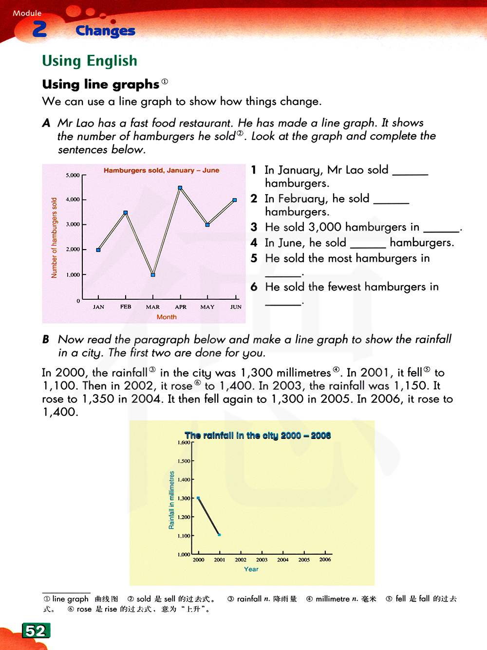 现在读一读下面的短文,并制作出一张曲线图来表明城市的降雨量。开始的两个已经为你做好了。
