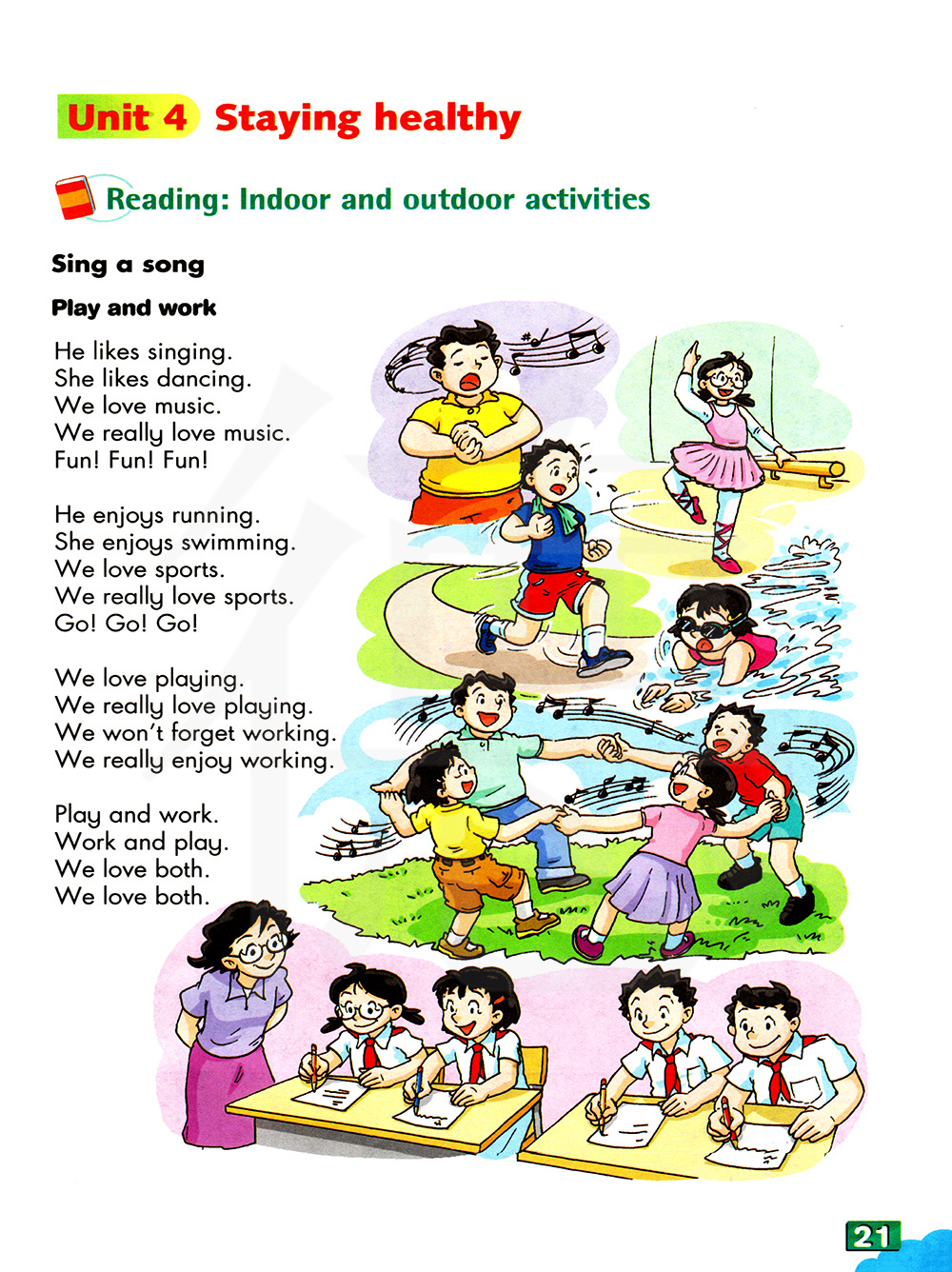 listen to music 等三个。掌握 sport 、activity 与 entertainment 三个单词,并能将 Lookand learn 中的各类活动进行分类。