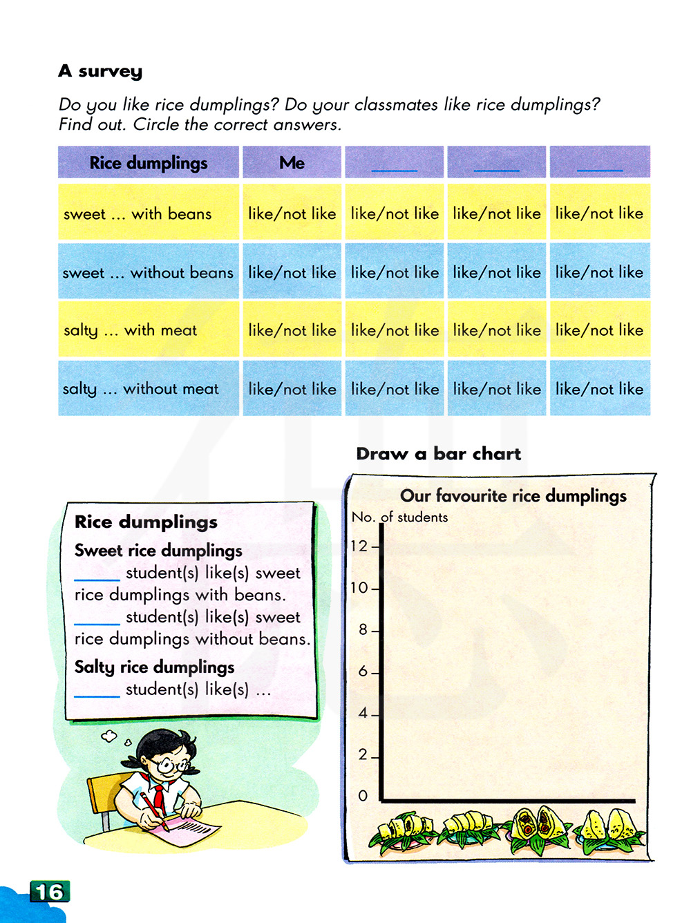 你喜欢粽子吗?你的同学喜欢粽子吗?找出来圈出正确的答案。