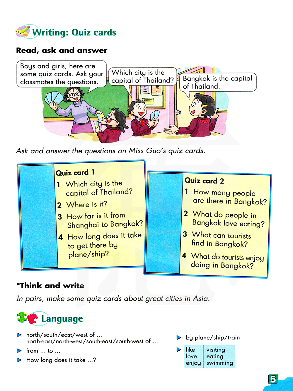 两人一组,制作一些有关亚洲的大城市信息的测试卡片。