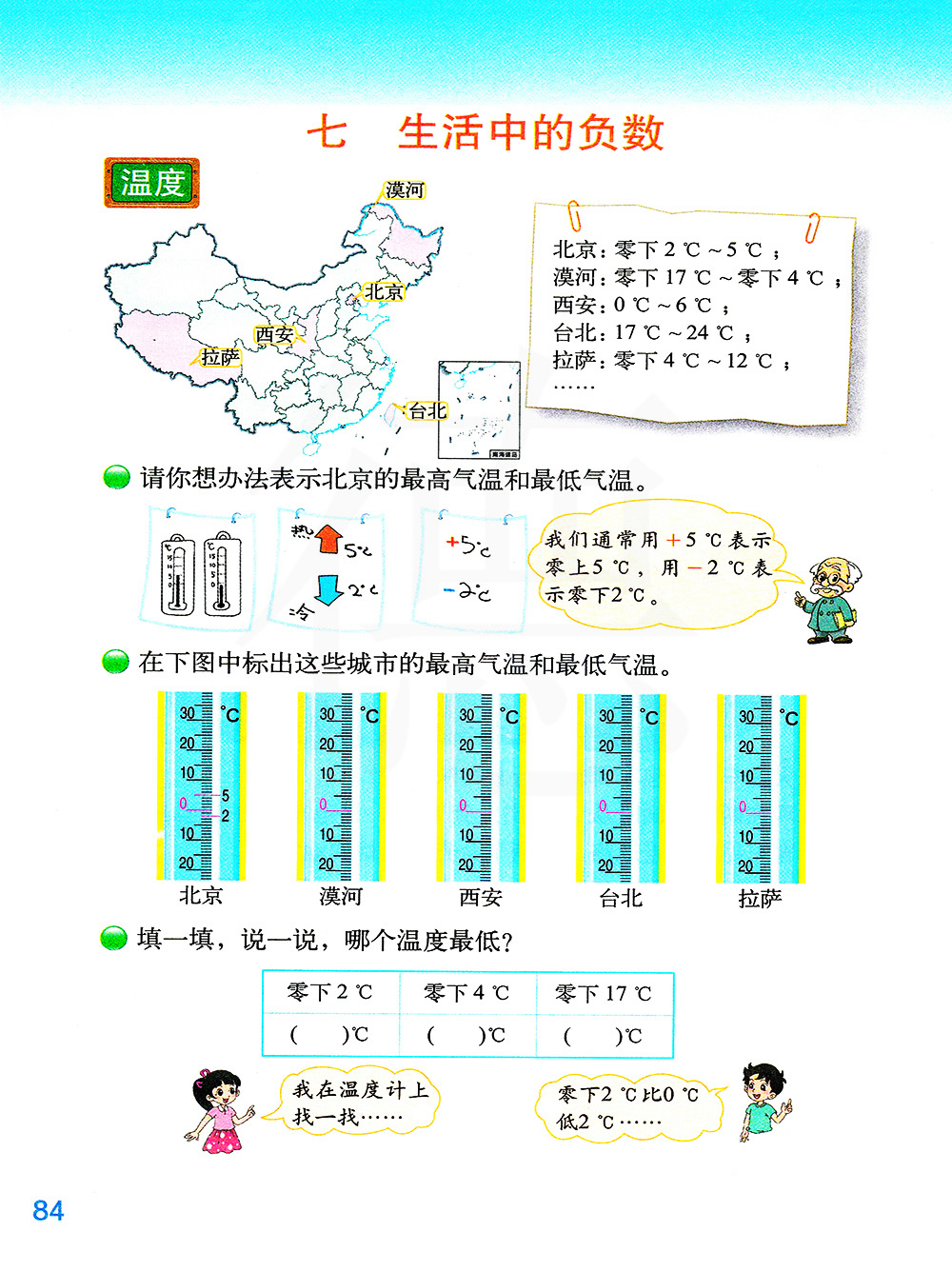 2、能够正确地比较两个零下的温度的高低: