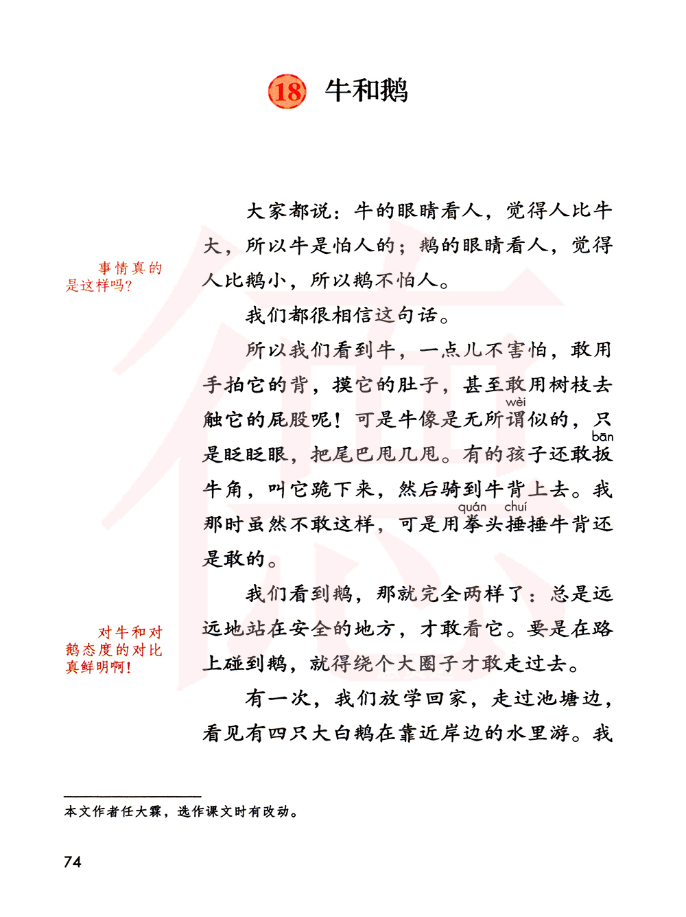 学习目标: 1. 掌握5个生字,能正确读写“屁股、破碗、池塘、惹怒、掐住、无缘无故、胳臂”等词语。 2. 通过感悟课文内容,了解课文蕴含的道理,认识到看待周围的事物,如果从不同的角度出发就会得到不同的结果。 3. 学习概括课文主要内容的方法,抓住有关语句,揣摩人物的心情及心理活动。 学习重点、难点: 通过感悟课文,了解看待周围的事物,从不同的角度出发就会得到不同的结果。