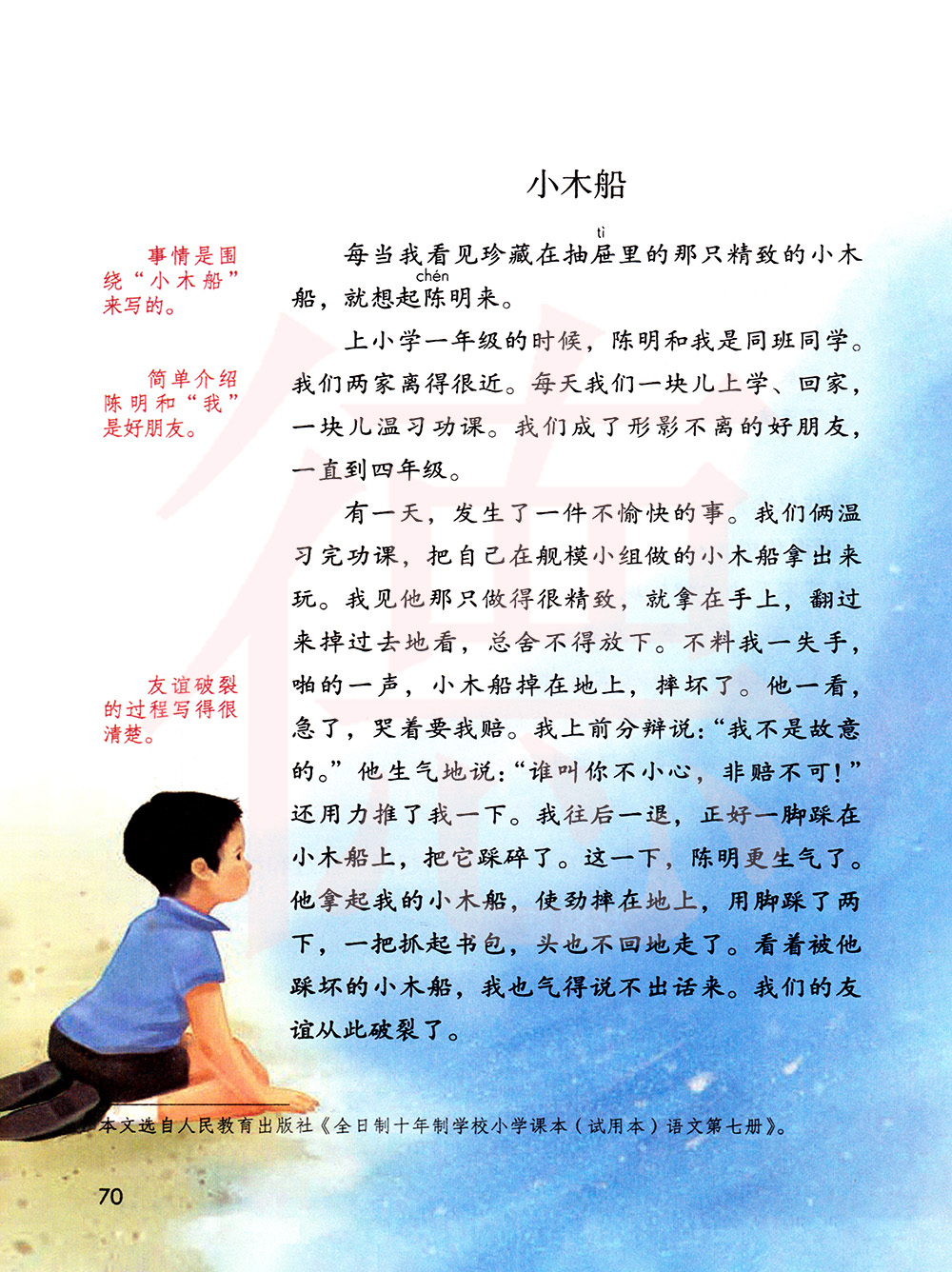 理解课文内容,懂得同学之间要相互谅解,多作自我批评,这样才能增1、进友谊。