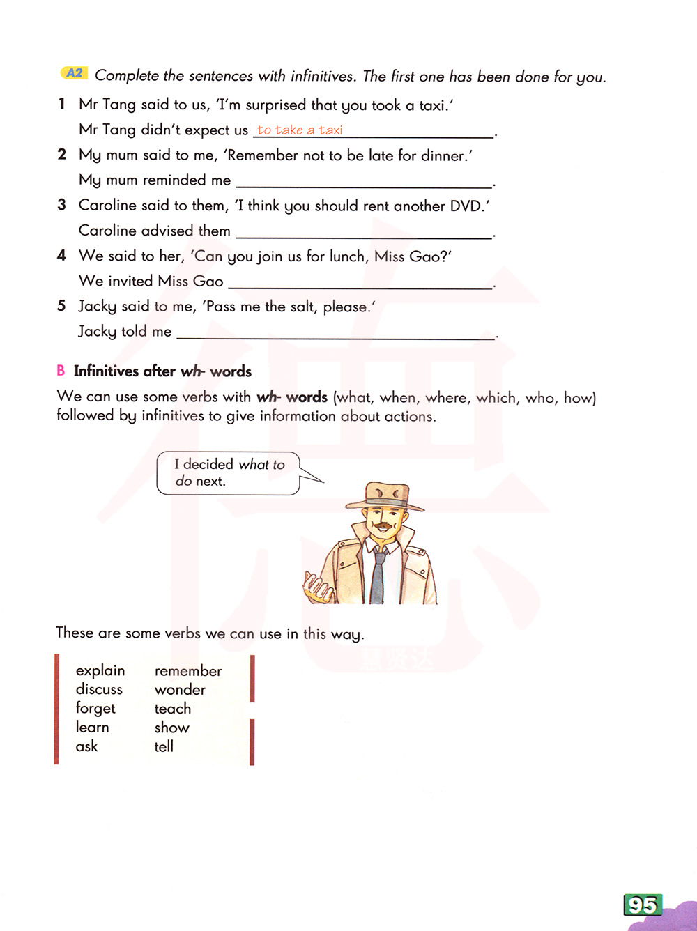 我们可以在一些动词伴随以wh开头的词(what,when,where,which,who,how)的后面来接不定式,以此给出一些行为的相关信息。