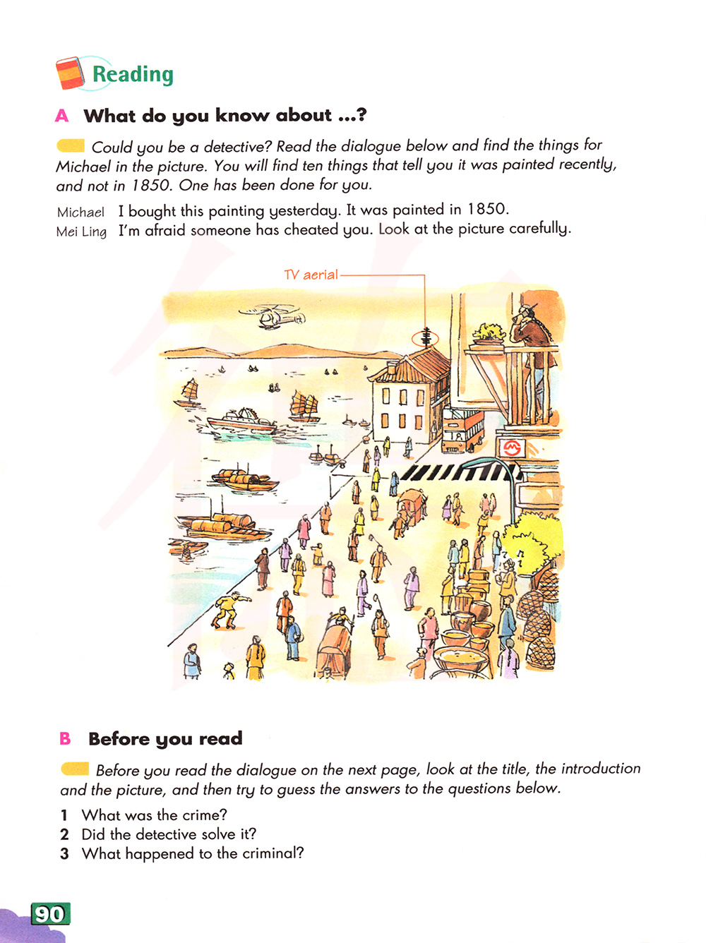 在你阅读下一页的对话之前,看看标题,介绍和图片,然后试着猜出下列问题的答案。
