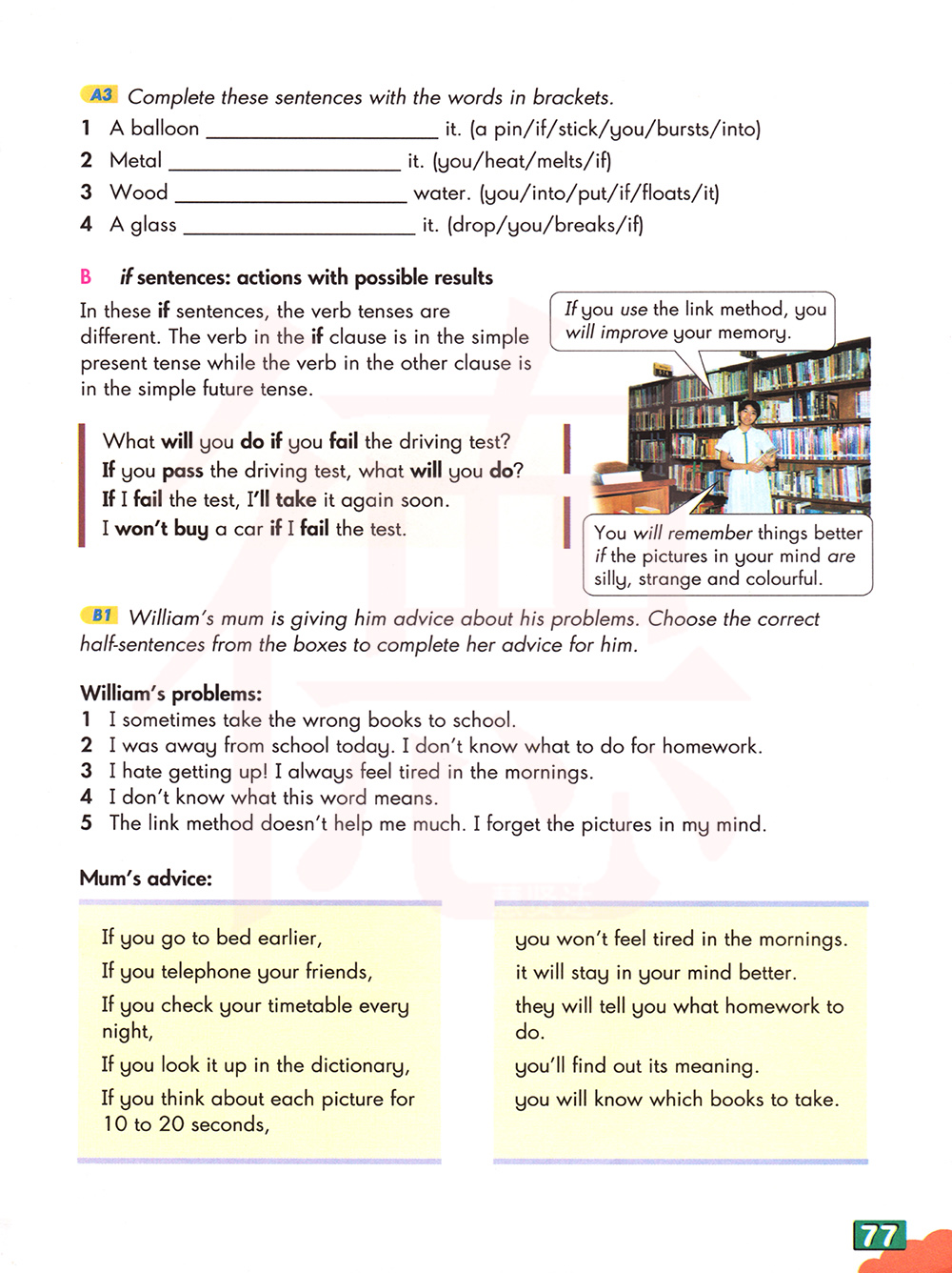 威廉的妈妈在针对他的问题给他一些建议。从方框里选择正确的另一半句子来完成她对他的建议。