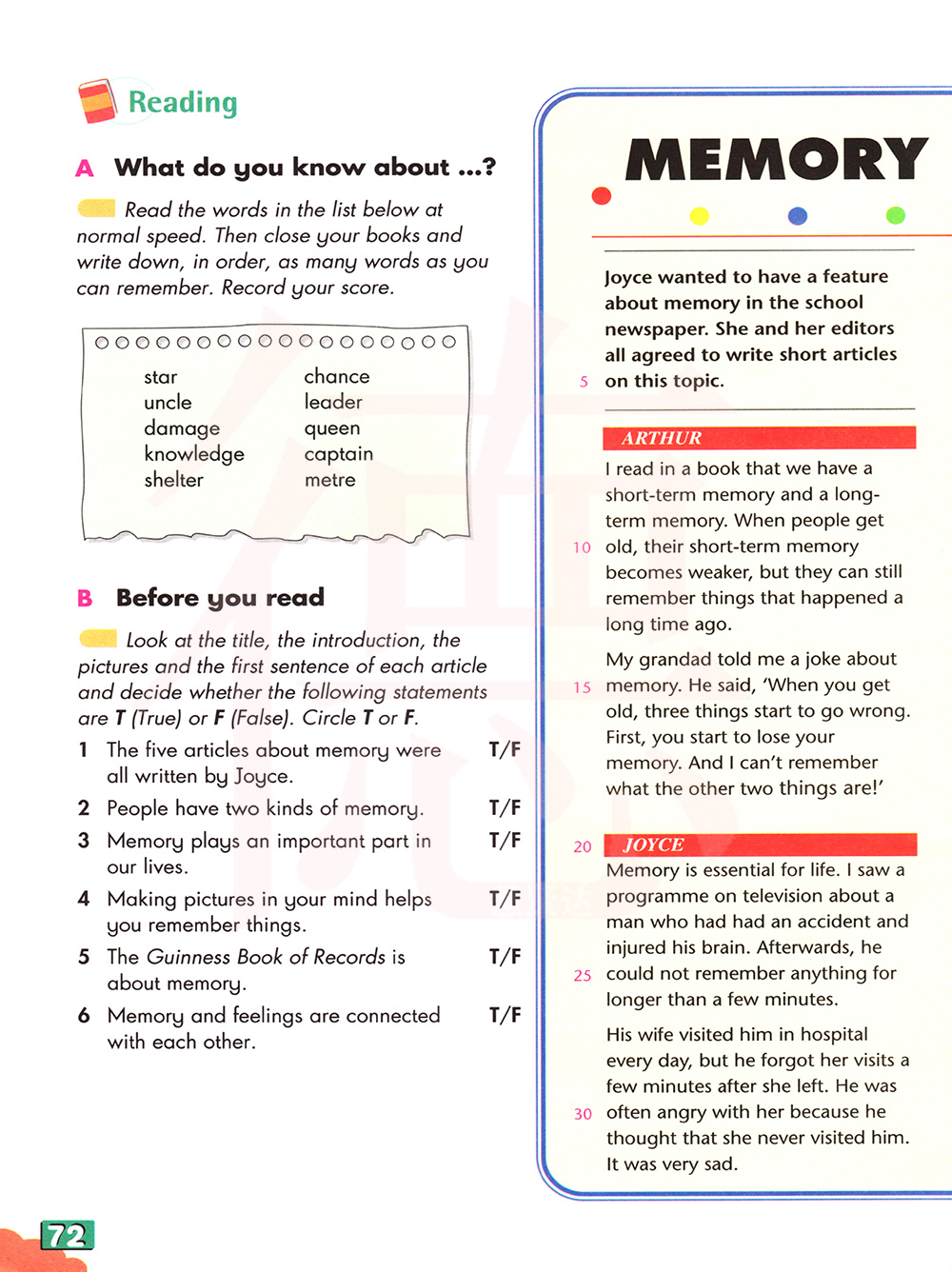 看标题,介绍,插图和每篇文章的第一句并判断下面的陈述是对的还是错的,圈上T或F。