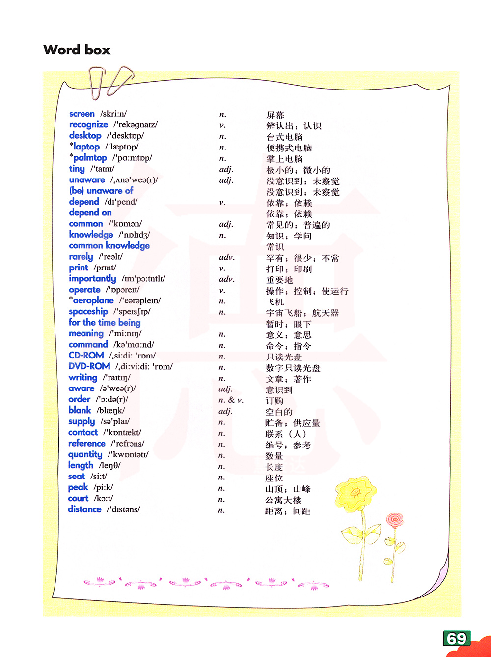常见的;普遍的 知识;学问 常识 罕有;很少;不常 打印;印刷