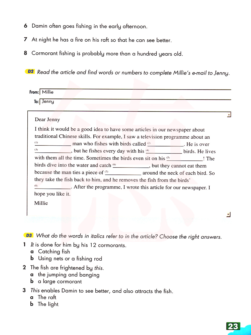 阅读文章,找出单词或数字来填写米利给詹妮的邮件。