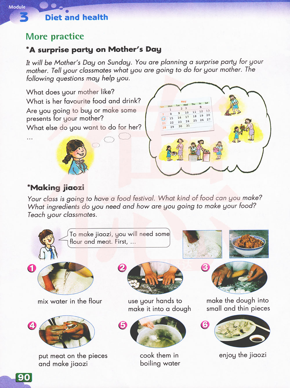 星期天是母亲节。你正在为你妈妈计划一个惊喜聚会。告诉你的同学你要为你的母亲做什么。以下问题可能对你有帮助。