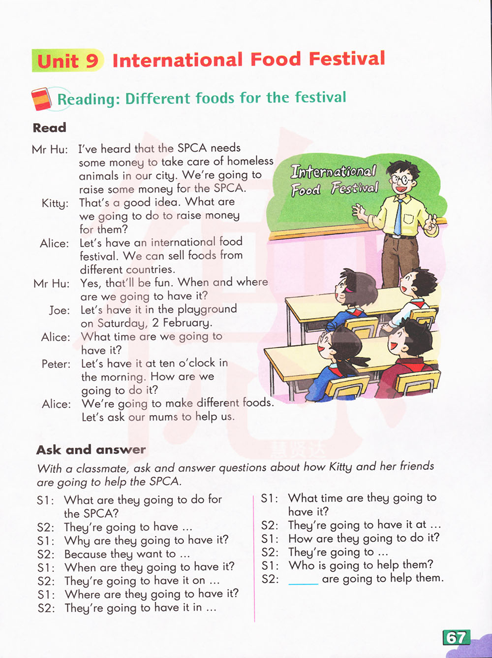 和一个同学,问和回答关于凯蒂和她的朋友将如何帮助SPCA 的问题。