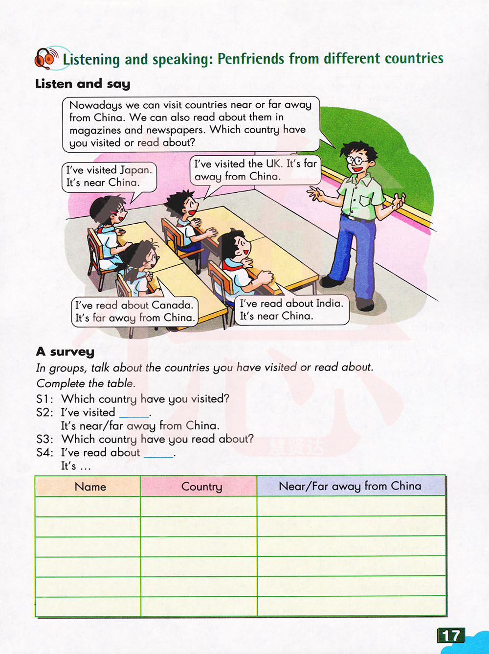 听和说:笔友来自不同的国家
