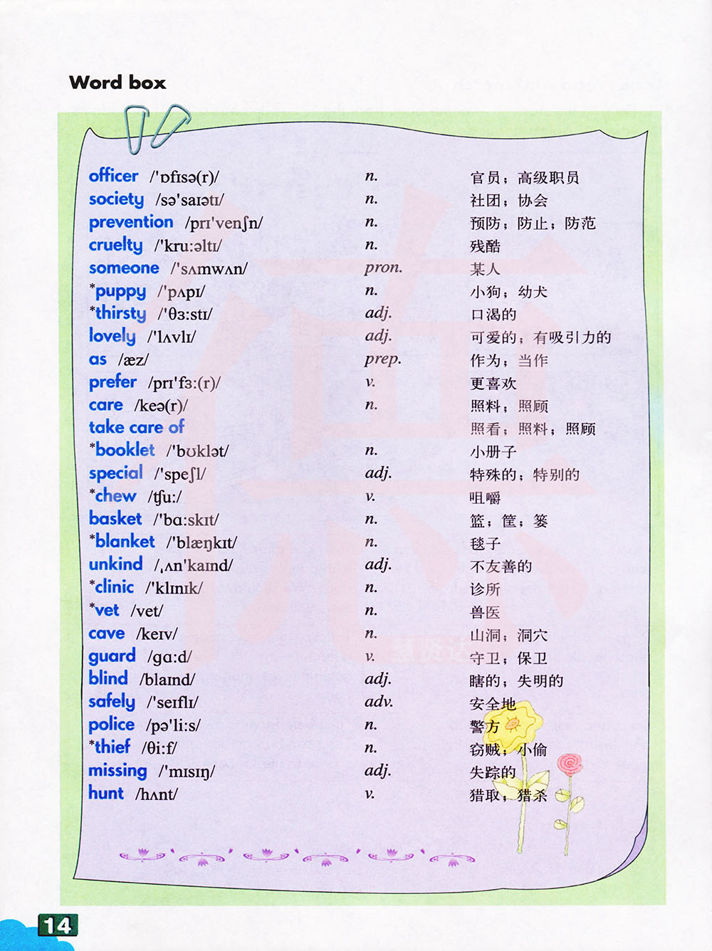 照料;照顾 照看;照料;照顾 小册子 特殊的;特别的 咀嚼