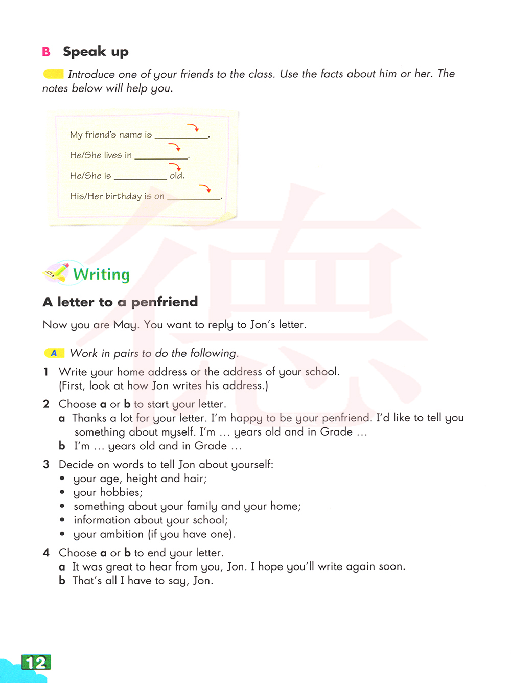 1写下你的家庭地址和学校地址 (首先,看看Jon是如何写地址的)