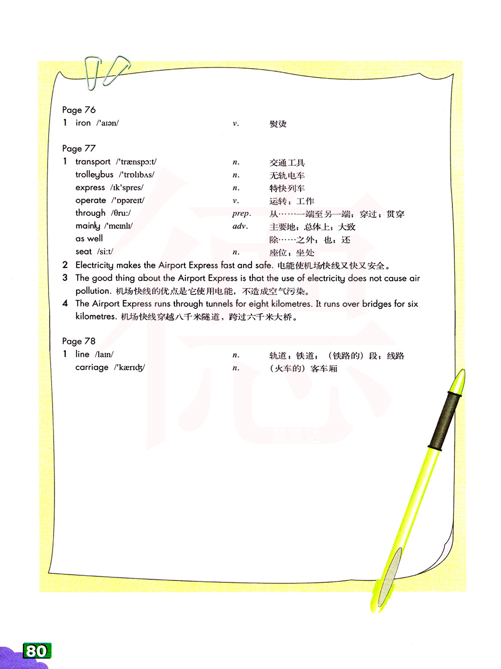 交通工具 无轨电车 特快列车 运转;工作 从...一端至另一端;穿过;贯穿