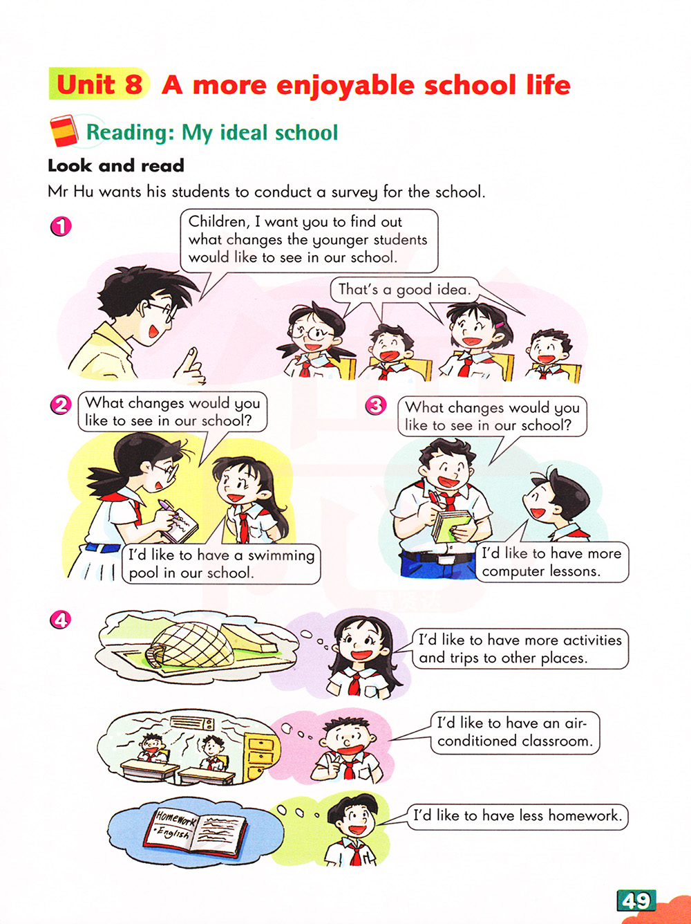 孩子们,我想让你们看看年轻的学生希望我们学校发生什么变化。