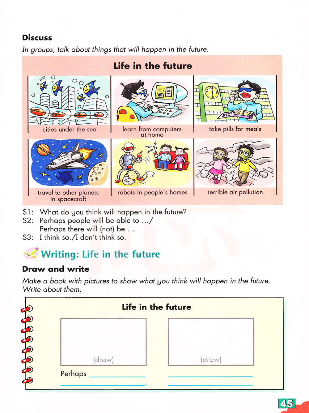 用图片做一本书,展示你认为将来会发生什么,写下他们。