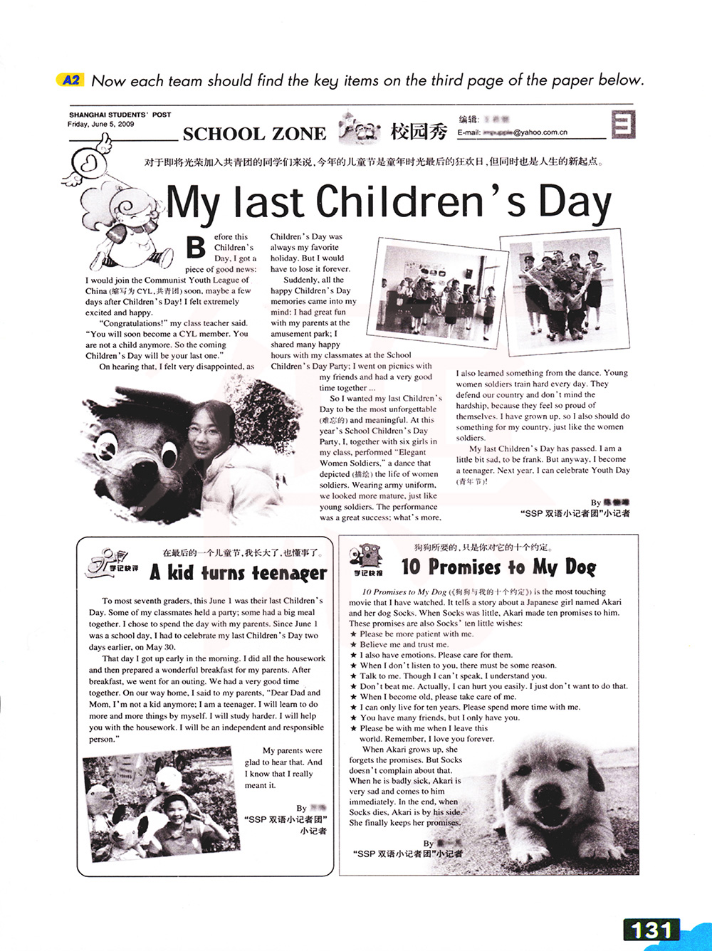 学龄 上海学生的邮件 星期五 6月9日 2009年