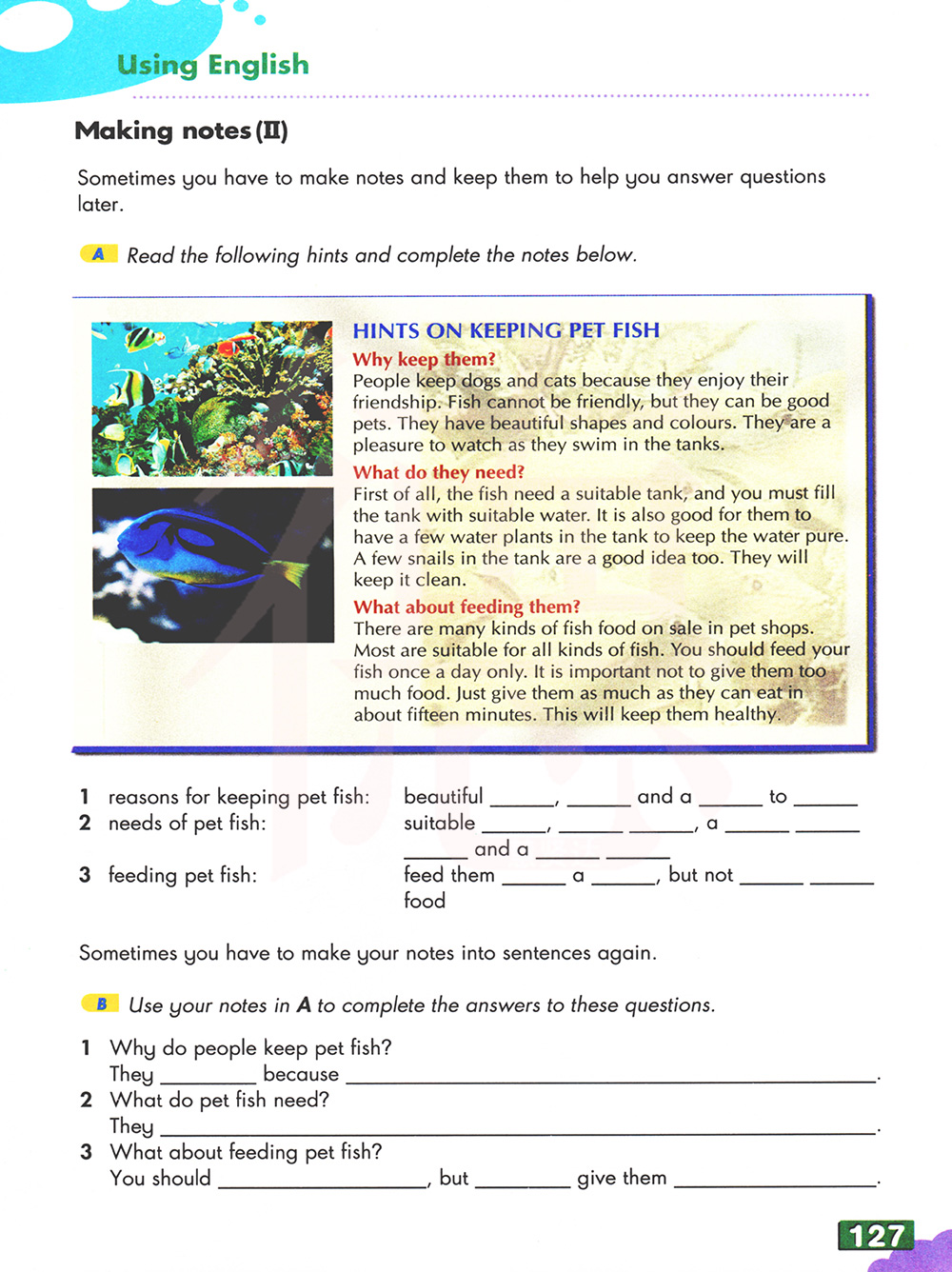 B用A中的笔记完成这些问题的答案。