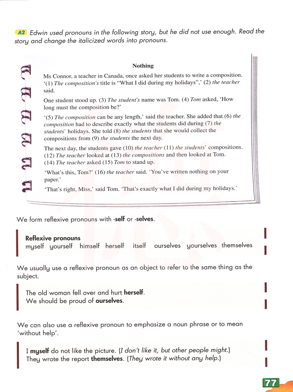 A2埃德温在下面的故事中使用了代词,但他没有用到足够的词。阅读故事,并将斜体字改为代词。