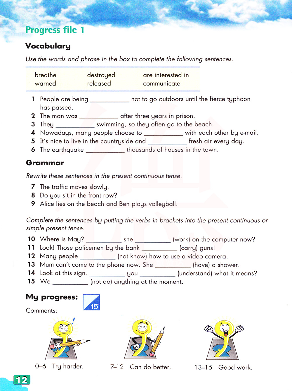 这些句子改成现在进行时态。