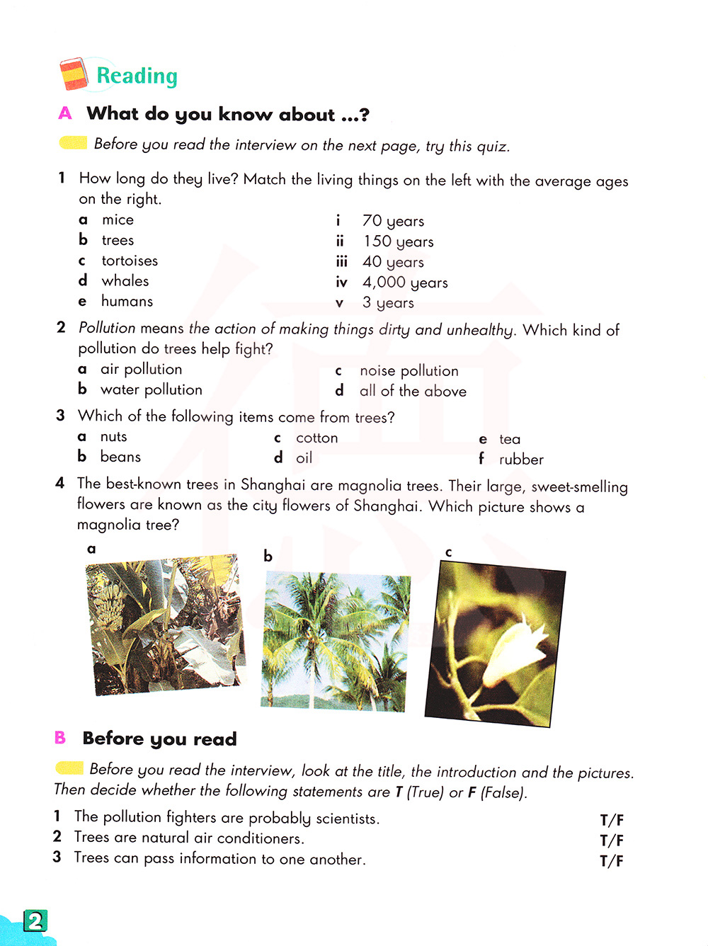 2 污染是指使事情变得肮脏和不健康的行为。为什么树木有助于对抗污染?