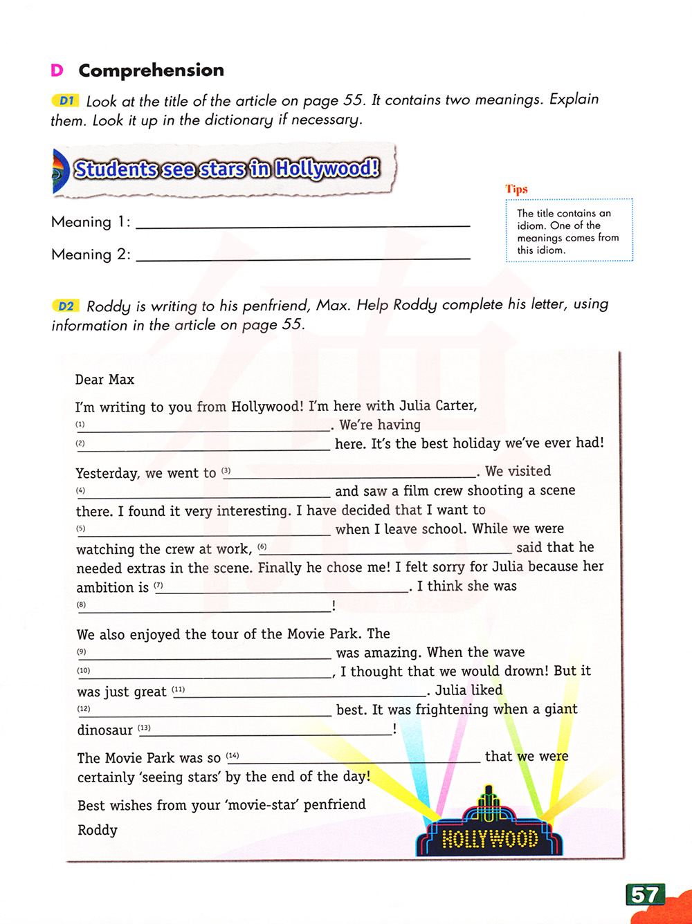罗迪正在给他的笔友马克斯写信。帮助罗迪完成他的信,使用第 55 页的文章中的信息。