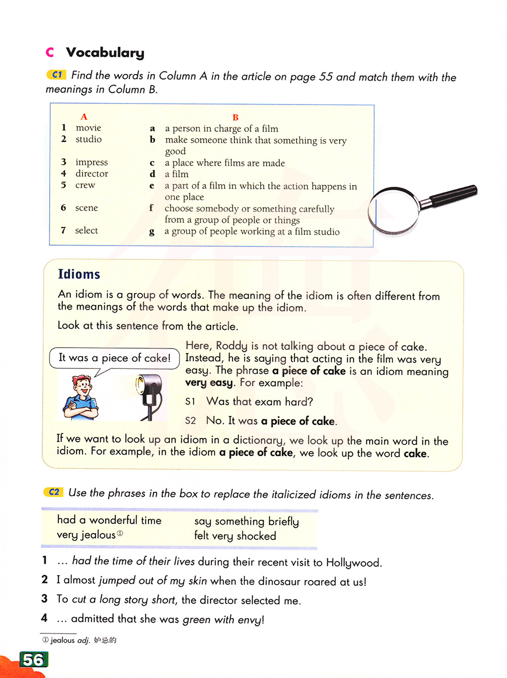 在第 55 页的文章中找到第 A 列中的单词,并将其与列 B 中的含义相匹配。