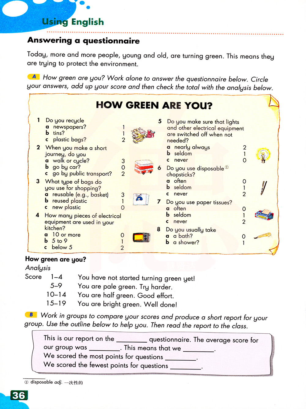 你有多绿?单独工作,回答下面的问题。圈出你的答案,将分数加起来,然后用下面的分析检查总数。