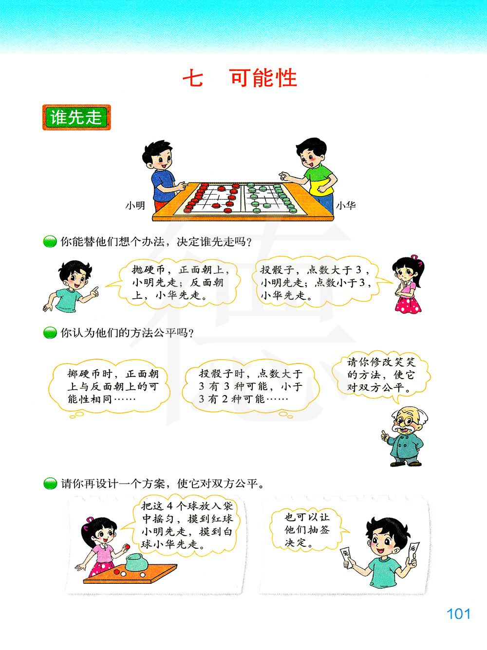 1、1、判断游戏是否公平原则:判断游戏规则是否公平,要看代表双方的事件发生的可能性是否相等。如果相等,则游戏规则公平;如果不相等,则游戏规则不公平。