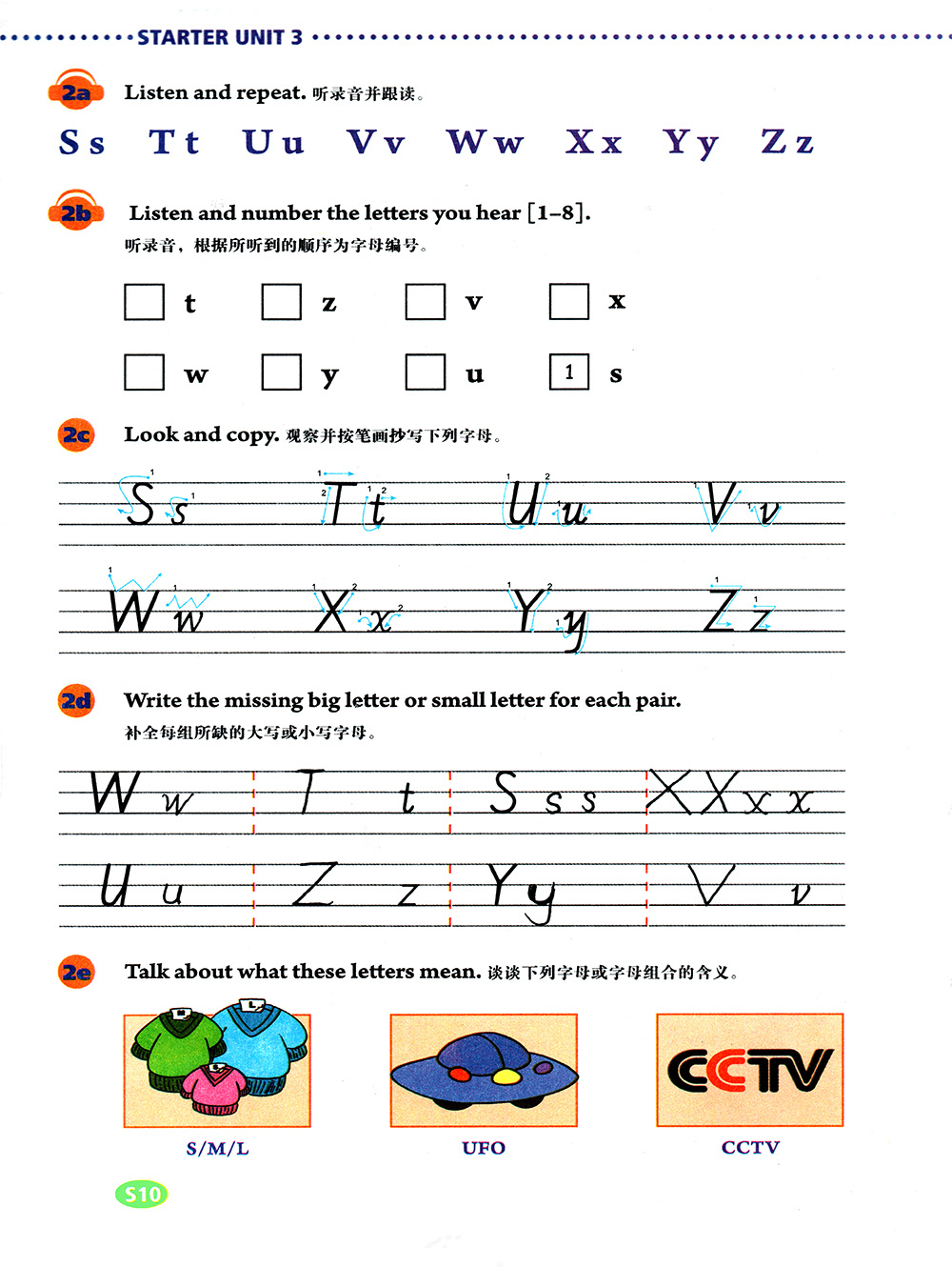观察并按笔画抄写下列字母。